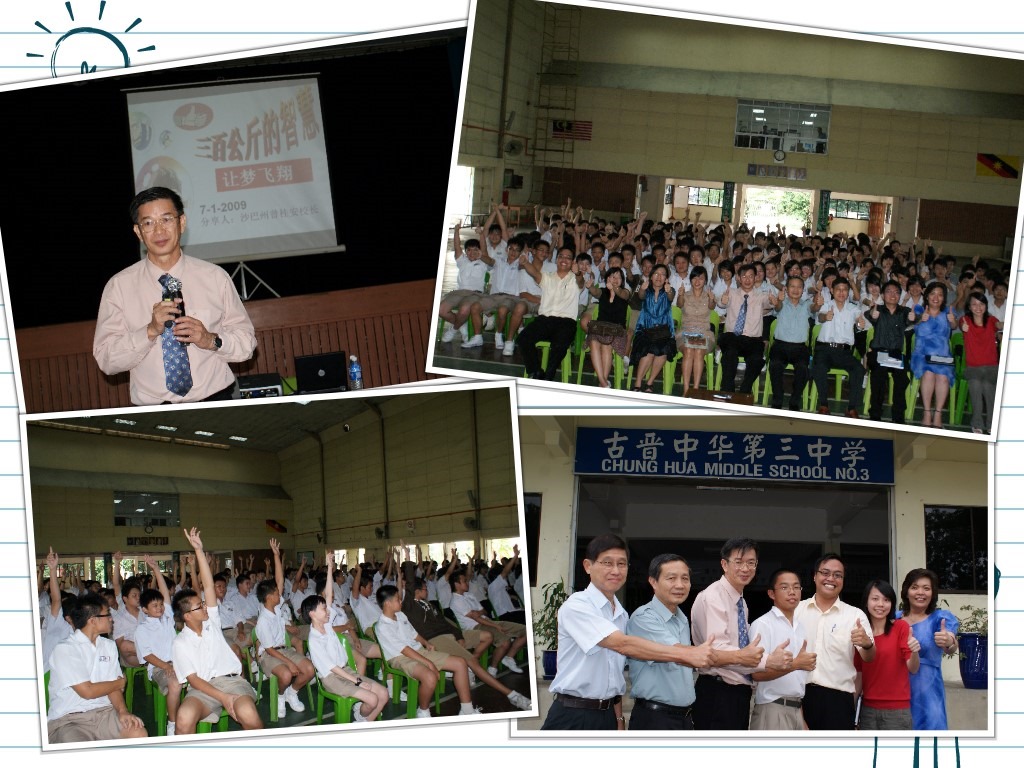 09-01-07 行知赏识激励讲座 myxingzh / January 7, 2009 行知赏识激励讲座《三百公斤的智慧》——让梦飞翔 日期:2009年1月7日 单位:古晋三中 对象:学生,老师,校长