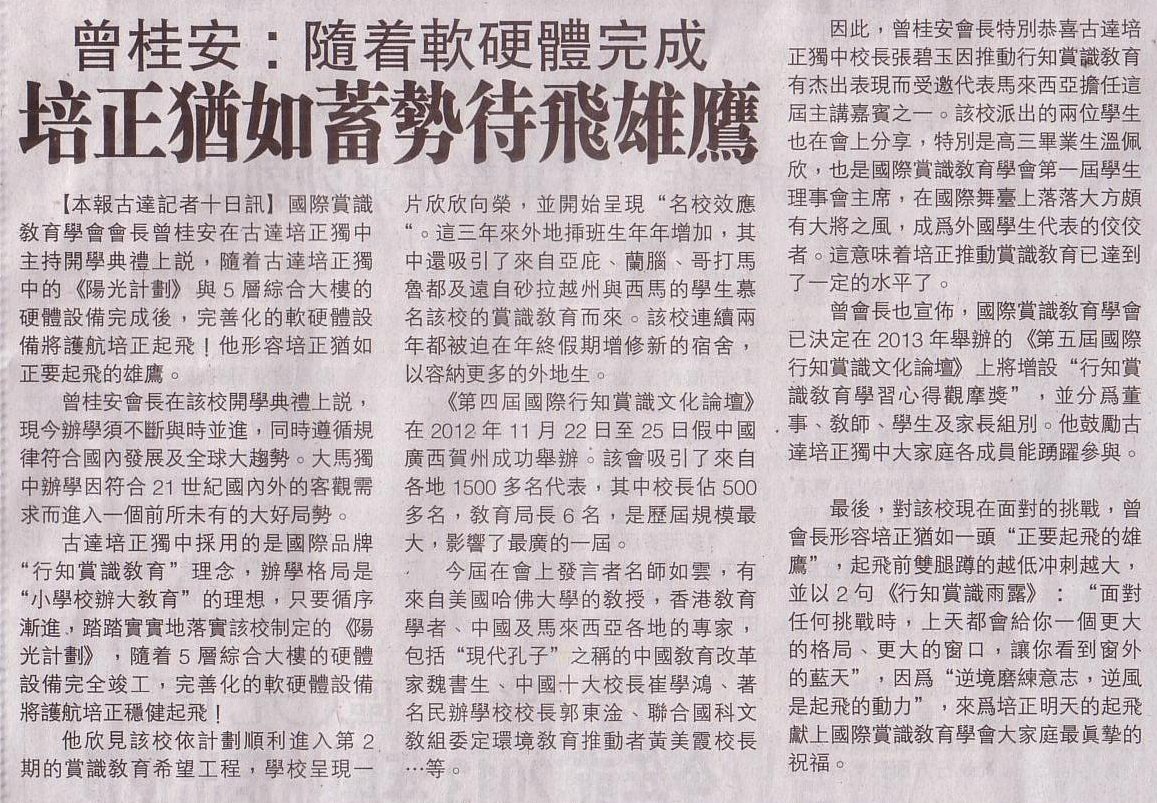 13-09-27 古达培正独中招生【王平忠宣布四项计划】