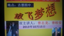《小六家长赏识激励升中讲座》 “心态决定孩子的命运,格局决定教育的结局” 日期:2013年10月15日 人数:30 单位:古晋中华四中主办 对象: 家长,老师,学生 地点:古晋中华四中