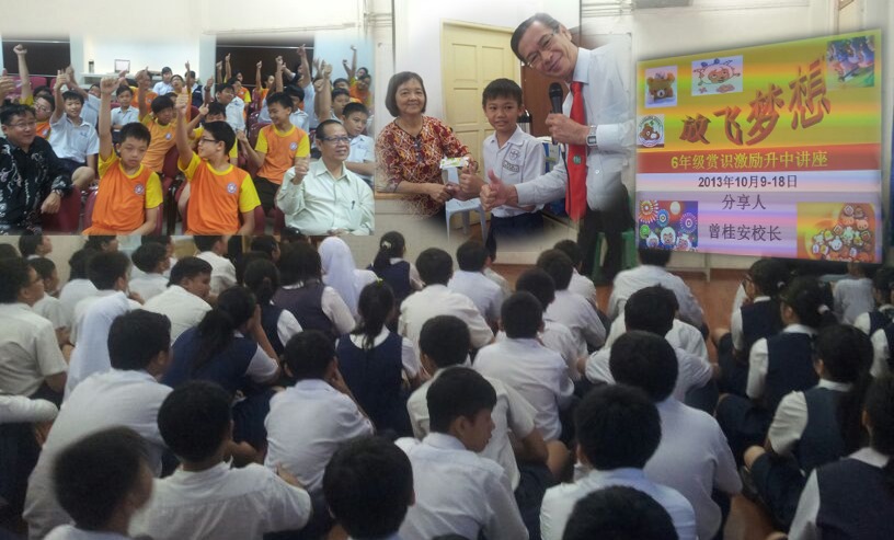 13-10-10 讲座 (古晋中华第四中学的招生活动) Adeline Lo / October 10, 2013 行知赏识讲座 《放飞梦想》 日期:2013年10月10日 人数:40位(答邦中公),108位(圣保禄小学) 单位:2所 单位名字:答邦中公;圣保禄小学 对象: 6年级同学 地点:答邦中公;圣保禄小学
