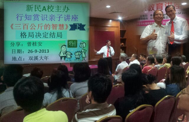13-09-26亲子讲座《三百公斤的智慧》-下 Adeline Lo / September 26, 2013 行知赏识亲子讲座《三百公斤的智慧》(下) “格局决定结局” 日期:2013年9月26日 人数:120 单位:1所 单位名字:双溪大年新民A校-家教协会主办 对象:家长