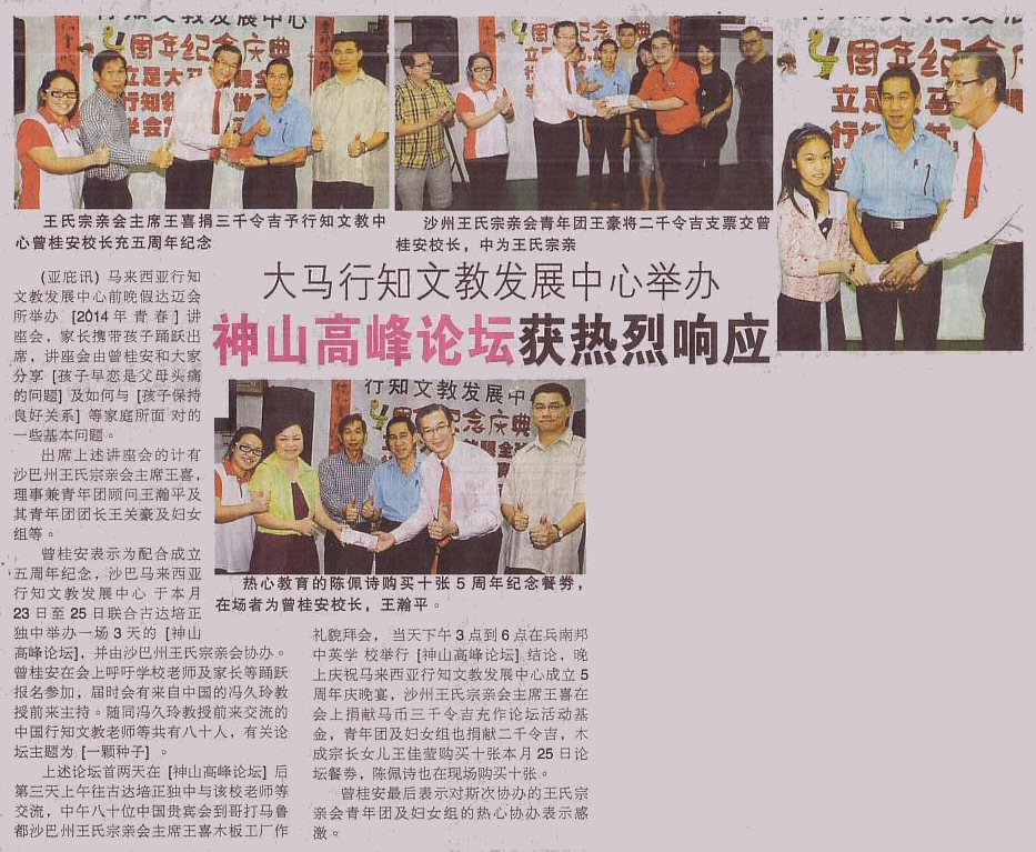 14.01.15 大马行知文教发展中心举办“神山高峰论坛”获热烈响应