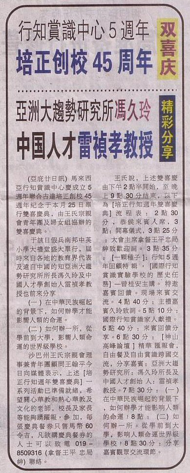 14.01.20 行知赏识中心5周年,培正创效45周年双喜庆;亚洲大趋势研究所冯久玲,中国人才学雷桢孝教授精彩分享
