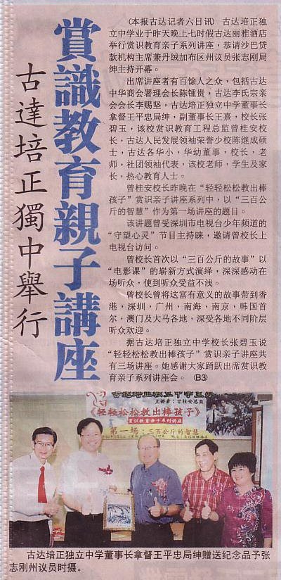 10 03 06 古达培正独中举行赏识教育亲子讲座