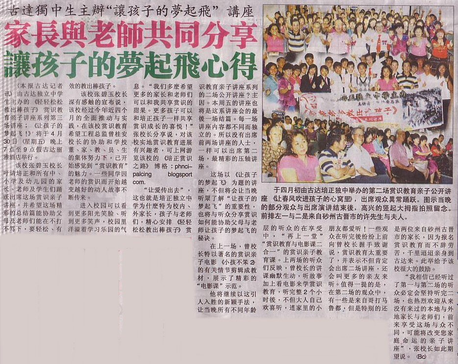 10 04 29 古达独中生主办“让孩子的梦起飞”讲座