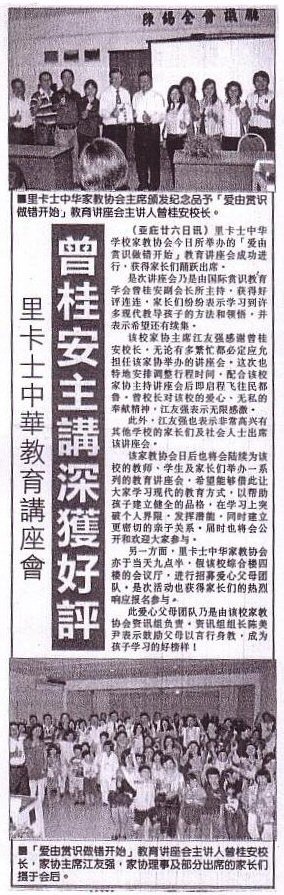 10 06 27 里卡士中华教育讲座曾桂安主讲深获好评