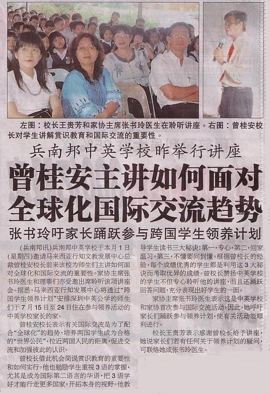 10 07 01 曾桂安主讲如何面对全球化国际交流趋势