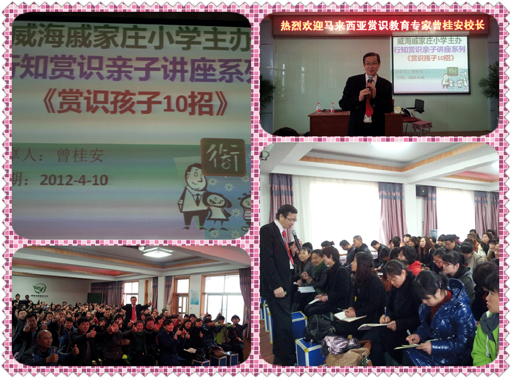 12-04-10 亲子讲座系列《赏识孩子10招》 Adeline Lo / April 10, 2012 行知赏识亲子讲座系列 《赏识孩子10招》 日期:2012年4月10日 人数:200 单位:威海戚家庄小学 对象:家长