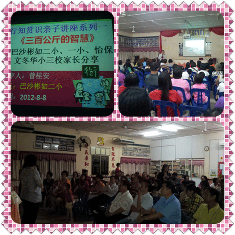 12-08-08 讲座《三百公斤的智慧》 Adeline Lo / August 8, 2012 行知赏识教育讲座系列一 《三百公斤的智慧》 日期:2012年8月8日 人数:200 单位:怡保巴沙彬如二小,一小,文冬华小学校 对象:家长,校长,老师
