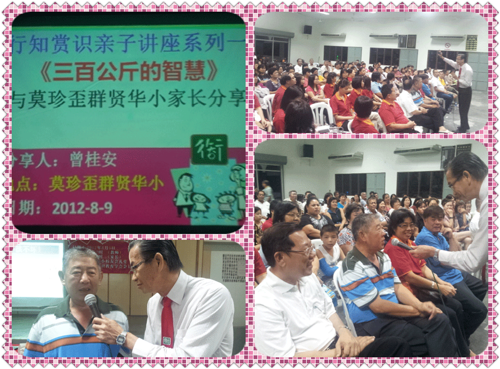 12-08-09 讲座《三百公斤的智慧》 Adeline Lo / August 9, 2012 行知赏识教育讲座系列一 《三百公斤的智慧》 日期:2012年8月9日 人数:200 单位:莫珍歪群贤华小 对象:家长,校长,老师