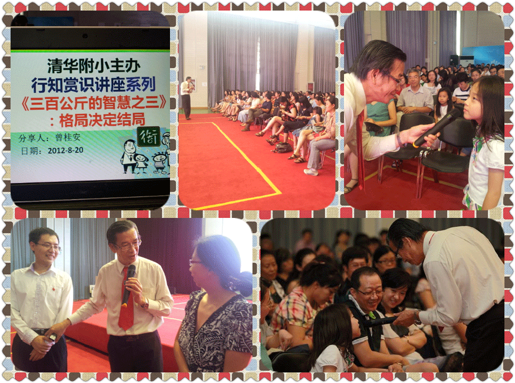 12-08-20 亲子讲座《三百公斤的智慧之三》 Adeline Lo / August 20, 2012 赏识教育亲子系列讲座 第二场《三百公斤的智慧之三》 “格局决定结局” 日期:2012年8月20日 下午 人数:400位 单位:北京清华附小 对象:校长,老师,家长