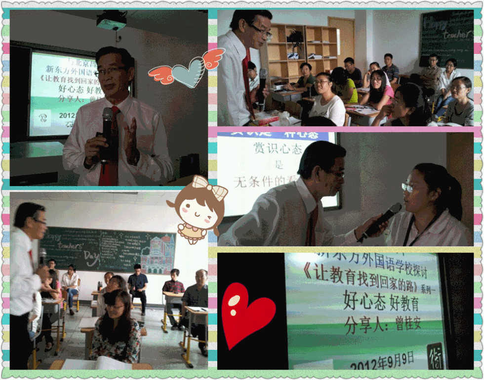 12-09-09 《让教育找到回家的路》系列 Adeline Lo / September 9, 2012 《让教育找到回家的路》系列 “好心态,好教育” 日期:2012年9月9日 单位名字:北京新东方外国语学校 对象:40位老师 地点:北京新东方外国语学校课堂