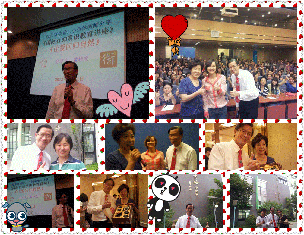 12-09-11 讲座《让爱回归自然》 Adeline Lo / September 11, 2012 国际行知赏识教育讲座——《让爱回归自然》 日期:2012年9月11日 人数:230位 单位名字:北京实验二小 对象:全体老师,中国人民共和国国务院参事李烈校长 地点:北京实验二小讲堂