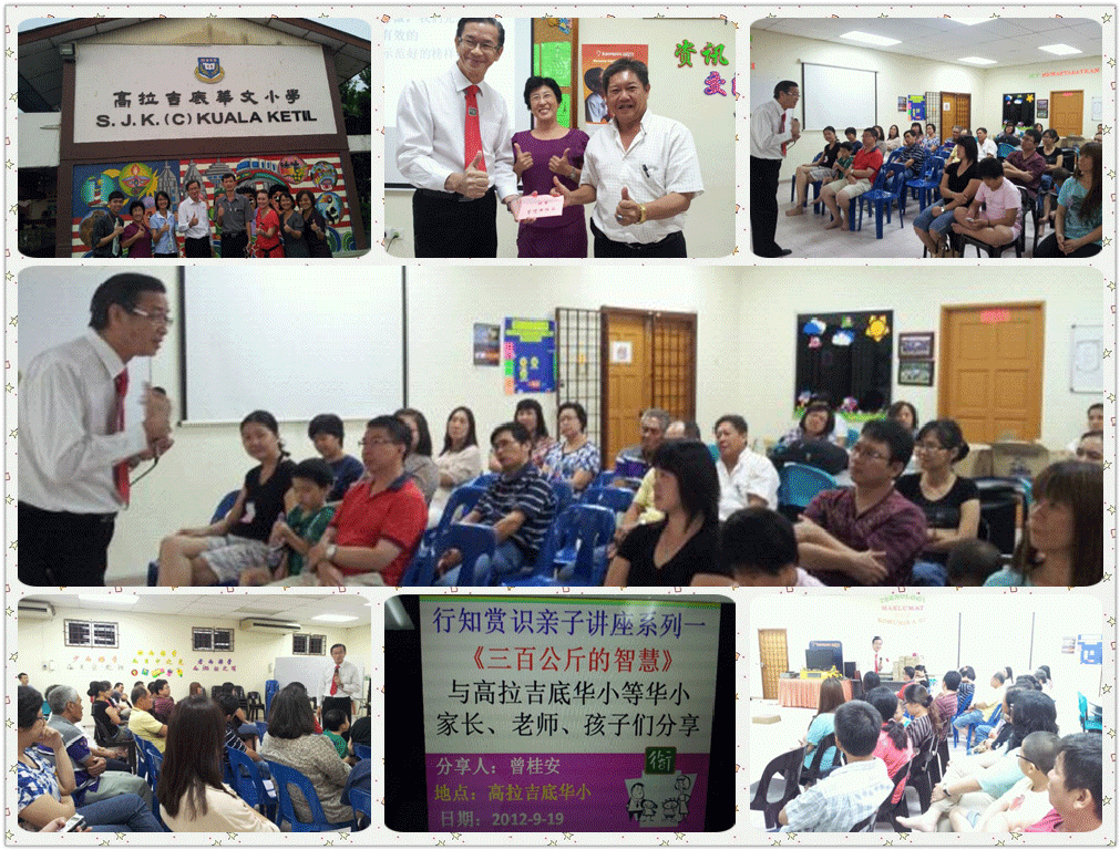 12-09-19 亲子讲座系列一《三百公斤的智慧》 Adeline Lo / September 19, 2012 行知赏识亲子讲座系列一 《三百公斤的智慧》 日期:2012年9月19日 人数:60 单位:高拉吉底小学 对象:高拉吉底家长,校长,老师