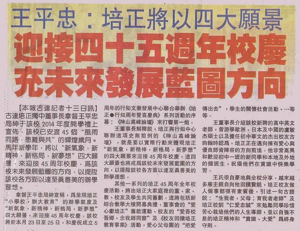 14-01-13 培正将以四大愿景迎接45周年校庆(沙巴)