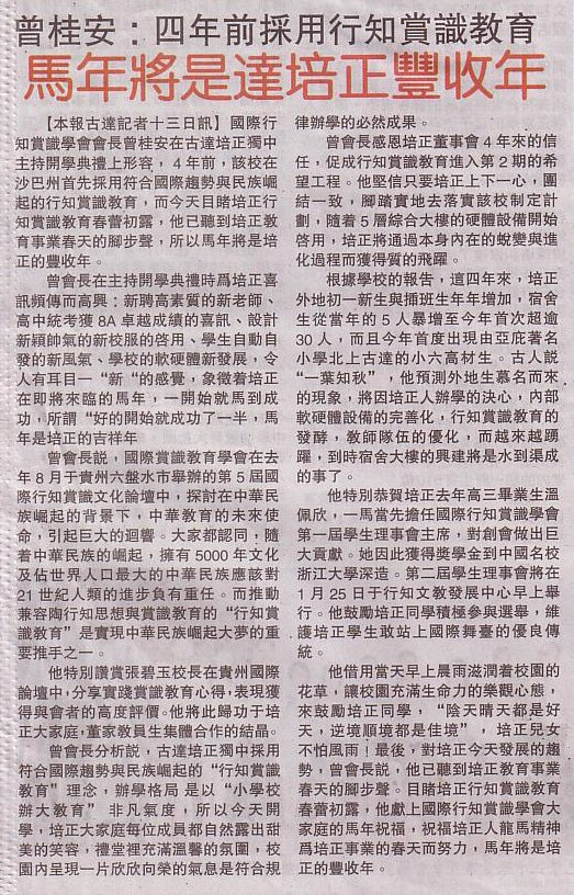 14-01-13 四年前采用行知赏识教育,马年将是培正丰收年