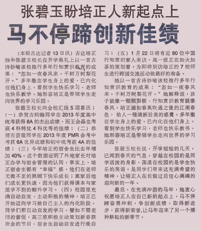 14-01-13 张碧玉盼培正人新起点上【马不停蹄创新佳绩】(沙巴)