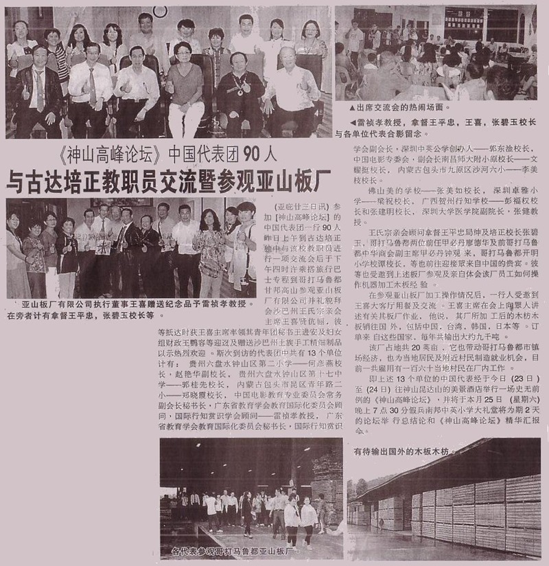 14-01-23 《神山高峰论坛》中国代表团90人与古达培正教职员交流和参观亚山板场(沙巴)
