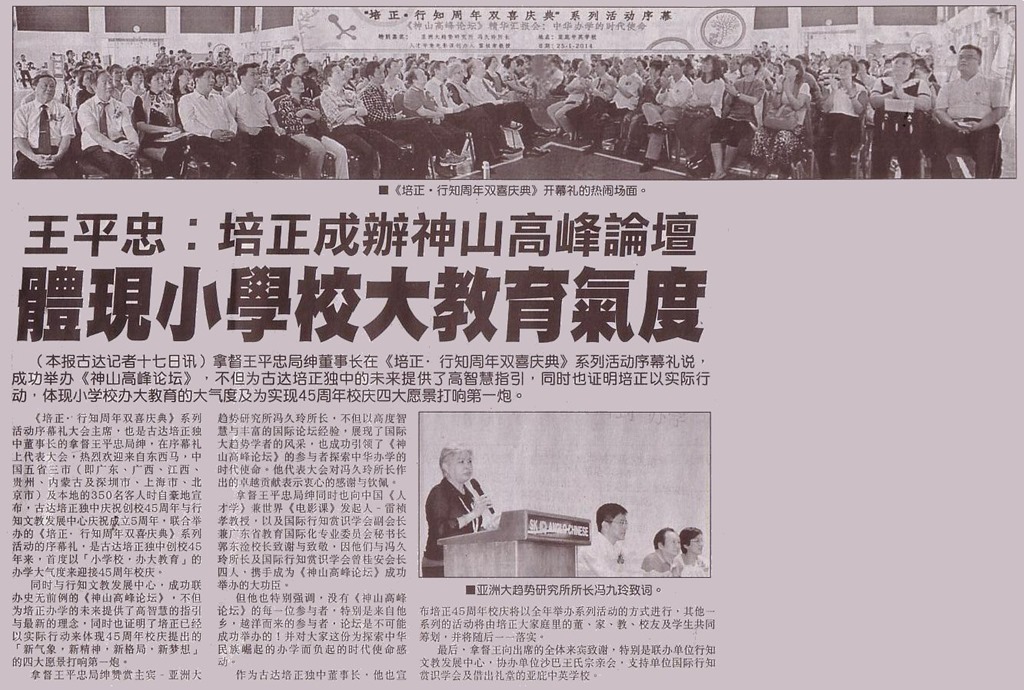14-02-17 王平忠:培正成办神山高峰论坛【体现小学校大教育气度】(沙巴)