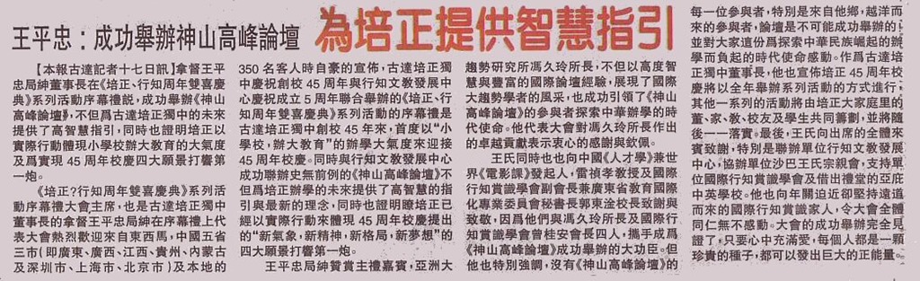 14-02-17 王平忠:成功举办神山高峰论坛【为培正提供智慧指引】(沙巴)