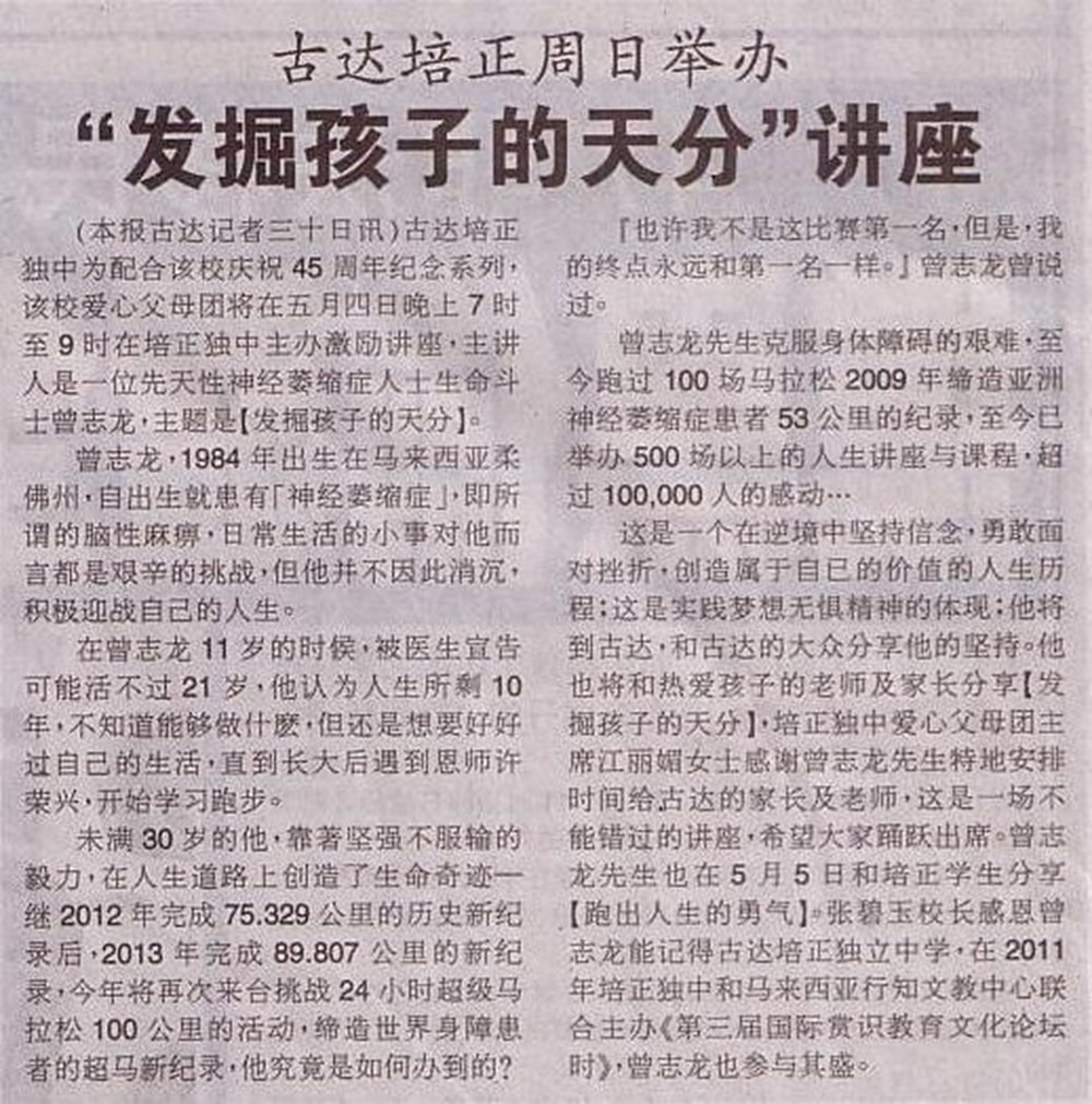 14-04-30 曾志龙激励讲座【4日古达培正举行】
