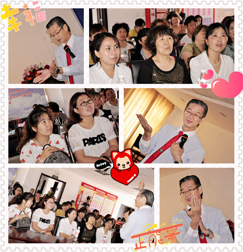 最令人感动的地方是他们的学习精神,家长为了要听曾校长的讲座,孩子又没人照顾,就索性连孩子也一起带来听课了。除了今天的家长,现场还有些是来自昨天听了讲座的家长。据说昨天和今天的场地距离是很远的,他们从昨天追寻到今天这个站点,为的就是要听更多曾校长的讲座。盘锦的家长们真的是爱子心切,是孩子们的学习榜样,为了孩子,他们真的很伟大!行知赏识教育是这些家长们心中渴望得到的真爱教育啊!