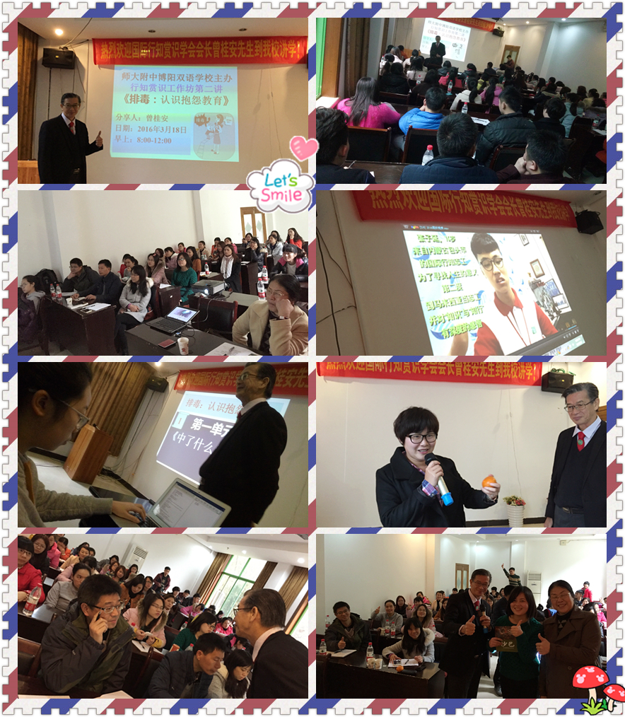 16-03-18 广西师大附中博阳双语学校 第二讲 《排毒:认识抱怨教育》 Adeline Lo / March 18, 2016 行知赏识工作坊 第二讲 《排毒:认识抱怨教育》 单位:广西师大附中博阳双语学校 人数: 50位 对象:全校老师,校长