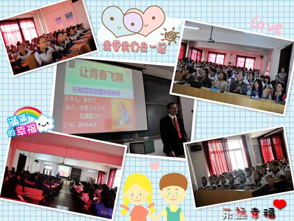 为了解开青少年青春期成长的疑惑,提升他们的恋爱观,内蒙古包头市九原区33中邀请了国际赏识教育学会会长曾桂安校长为高中部的孩子们,主讲“行知赏识恋爱讲座系列”——《让青春飞翔》。从每个孩子的眼睛看得出他们是多么期待这堂关乎他们一生的人生大课啊!