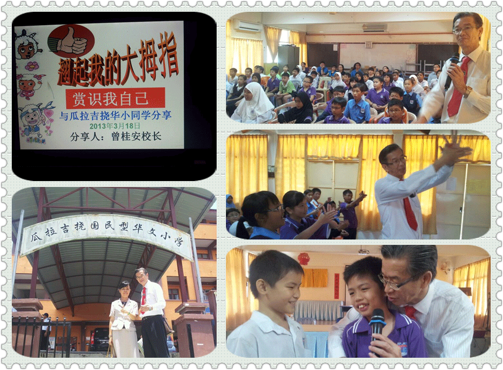 13-03-18 激励讲座《赏识我自己》- 爱心计划学校 myxingzh / March 18, 2013 翘起我的大拇指 《赏识我自己》 日期:2013年3月18日 人数:全校 单位:1所 单位名字:彭亨州淡马鲁县瓜拉吉挠国民型华小 对象:学生 地点:瓜拉吉挠国民型华小