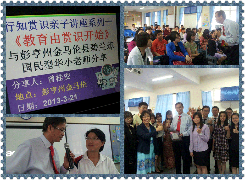 13-03-21 亲子讲座 《教育由赏识开始》-爱心计划学校 myxingzh / March 21, 2013 行知赏识亲子讲座系列 《教育由赏识开始》 日期:2013年3月21日 人数:25位 单位:10所 单位名字:彭亨州金马崙县碧兰璋国民型华小 对象:教师和家长 地点:彭亨州金马崙